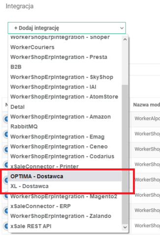 Na liście integracji w xSale (Konfiguracja > Ogólne > Integracje) dodajemy wtedy integrację z Dostawcą.