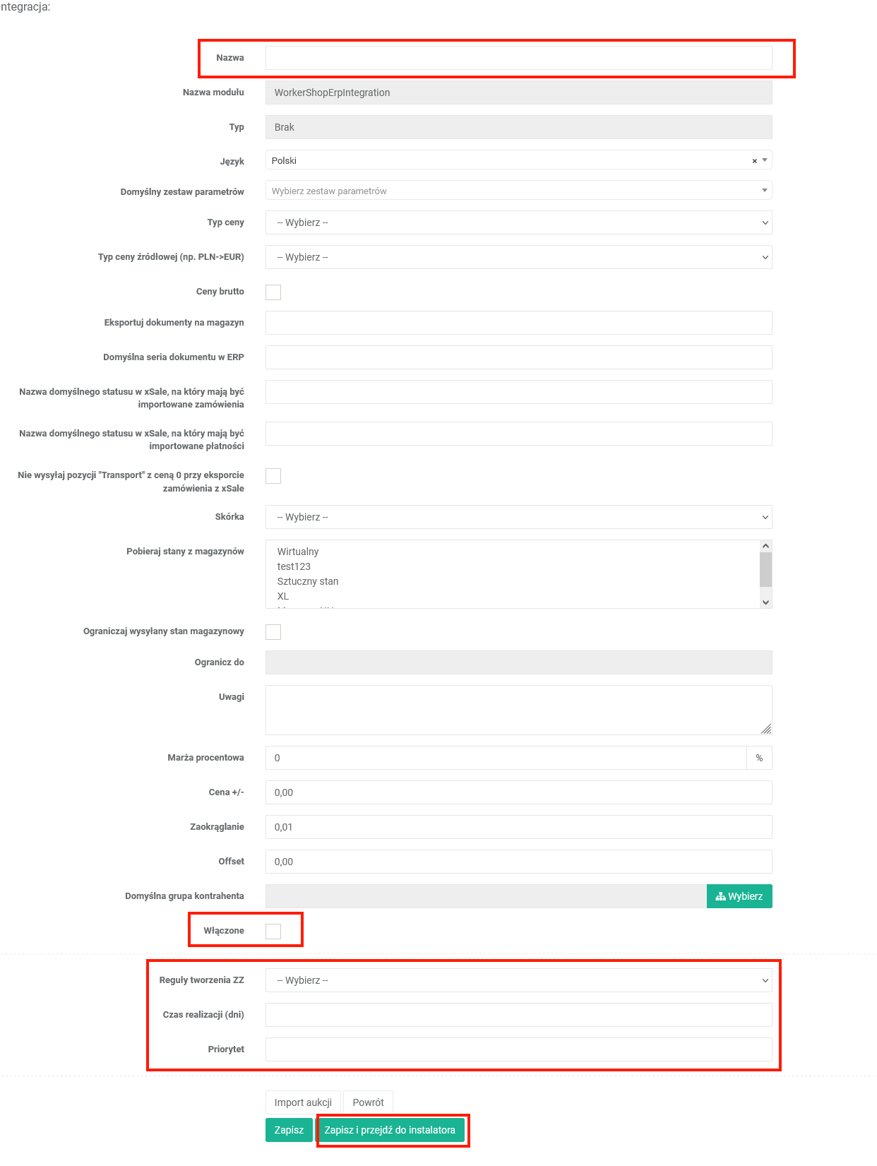 Dodając dostawcę ustalamy jego nazwę w xSale i określamy zasady według, których ma działać.