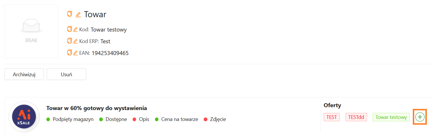 W celu dodania kanału sprzedaży do istniejącej oferty, należy wejść w ofertę i kliknąć w przycisk „+”.