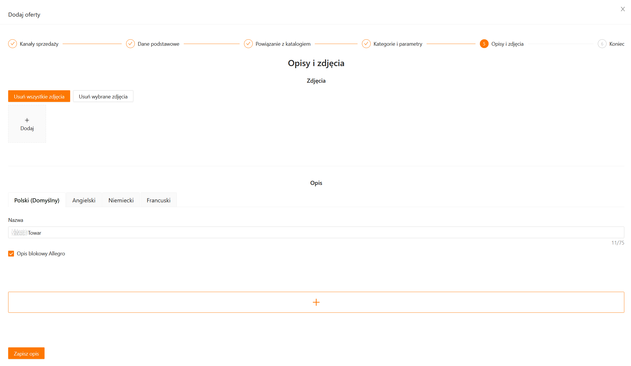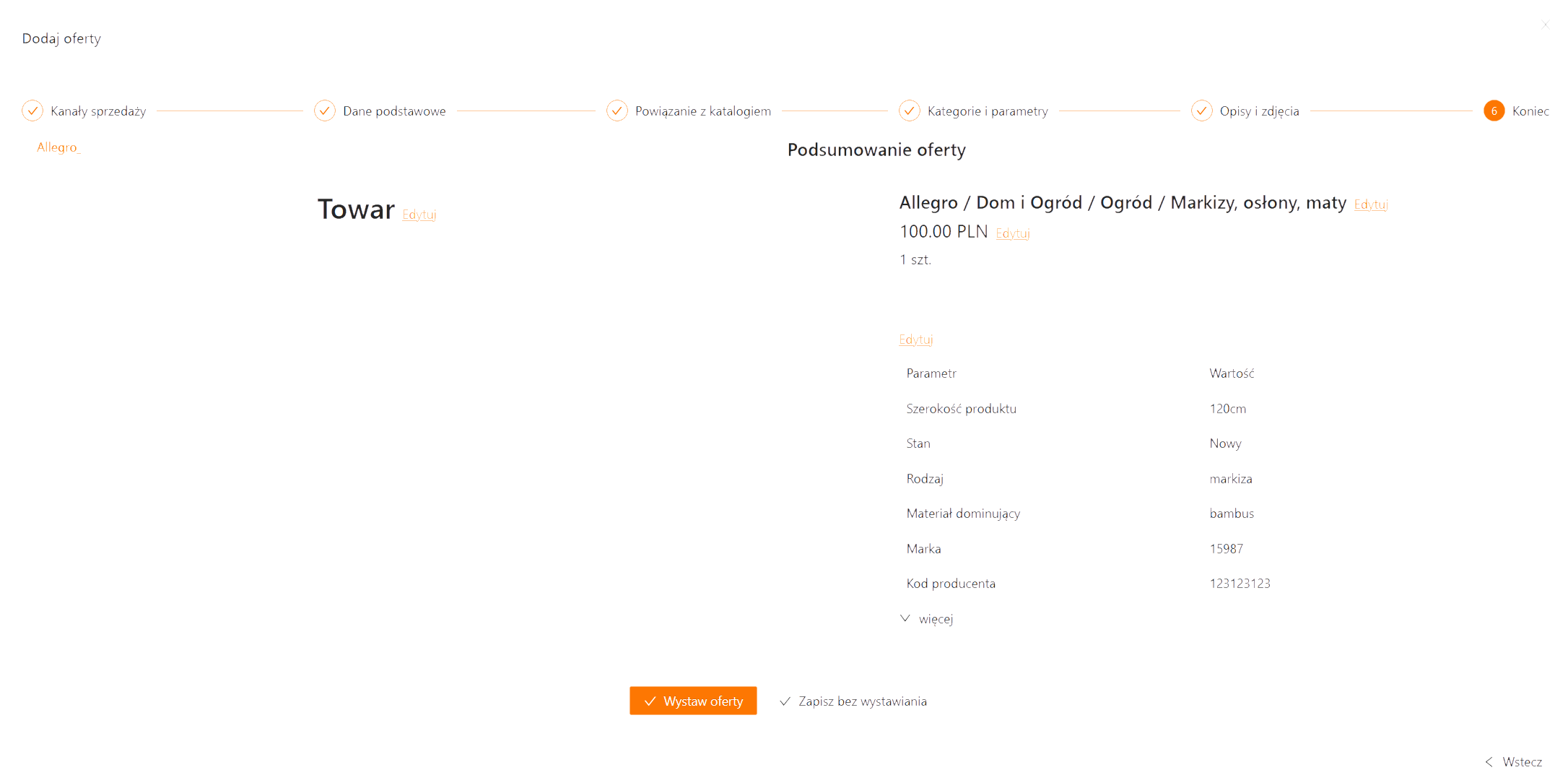 Kreator nowej oferty Allegro na dodatkowym rynku