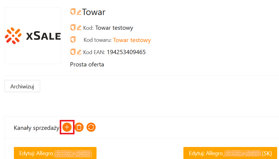 W celu dodania kanału sprzedaży do istniejącej oferty, należy wejść w ofertę i kliknąć w przycisk „+”.