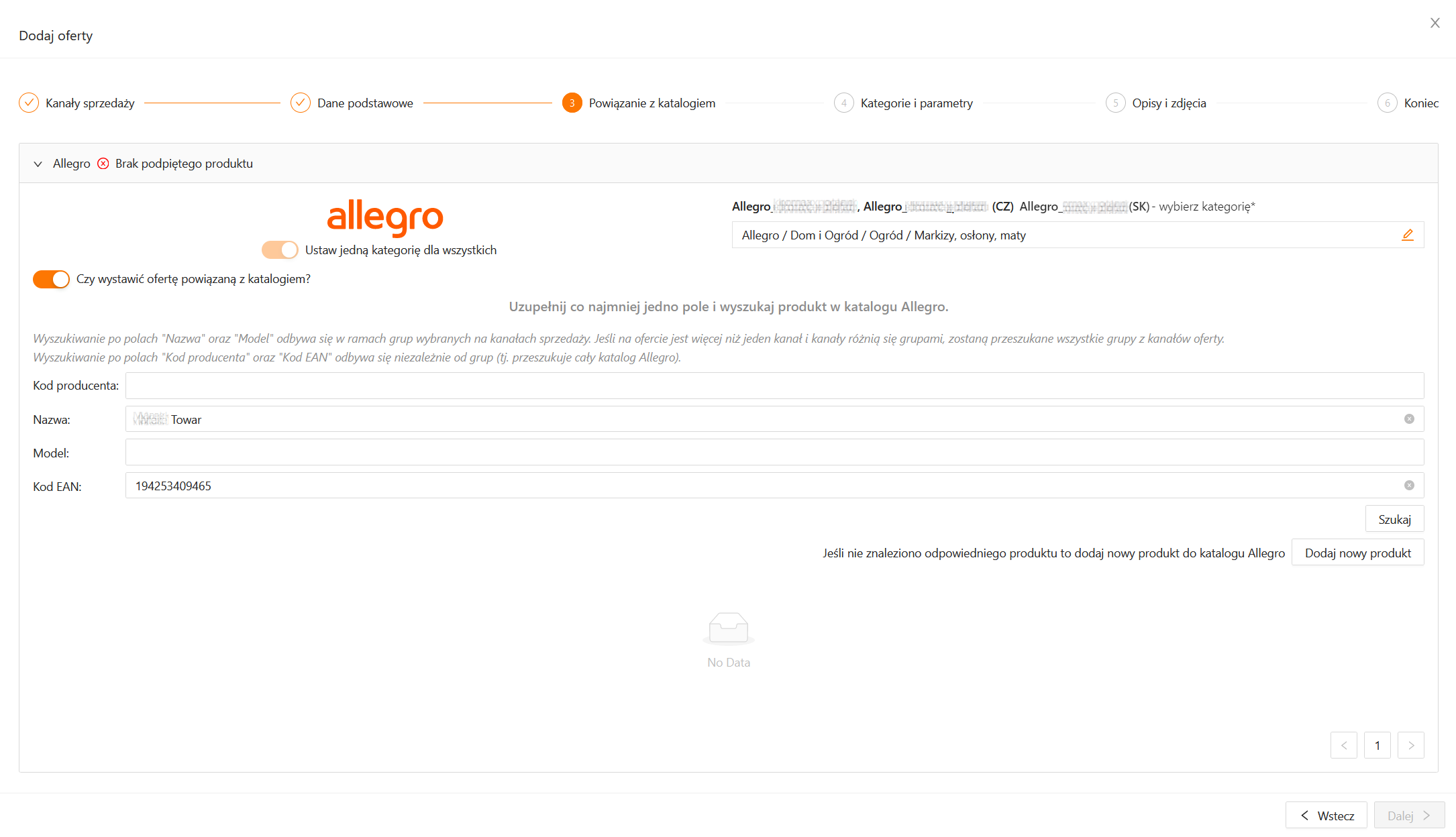 Kreator nowej oferty Allegro na dodatkowym rynku