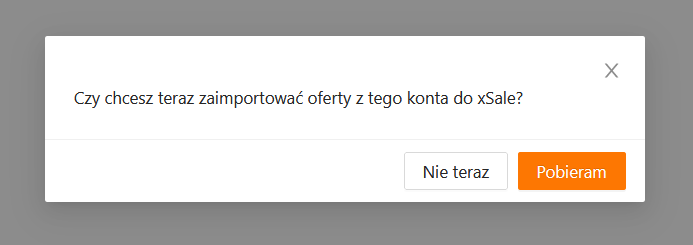 W ostatnim kroku kreatora tworzenia integracji po kliknięciu Zapisz pojawia się okno z pytaniem „Czy chcesz zaimportować oferty z tego konta do xSale?”