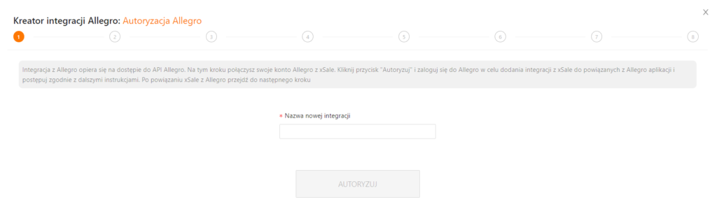 Kreator integracji jest narzędziem umożliwiającym dodanie nowej integracji w xSale. Dodawanie i edytowanie integracji Allegro, Allegro.CZ i Allegro.SK jest możliwe tylko z poziomu xSale V2.
