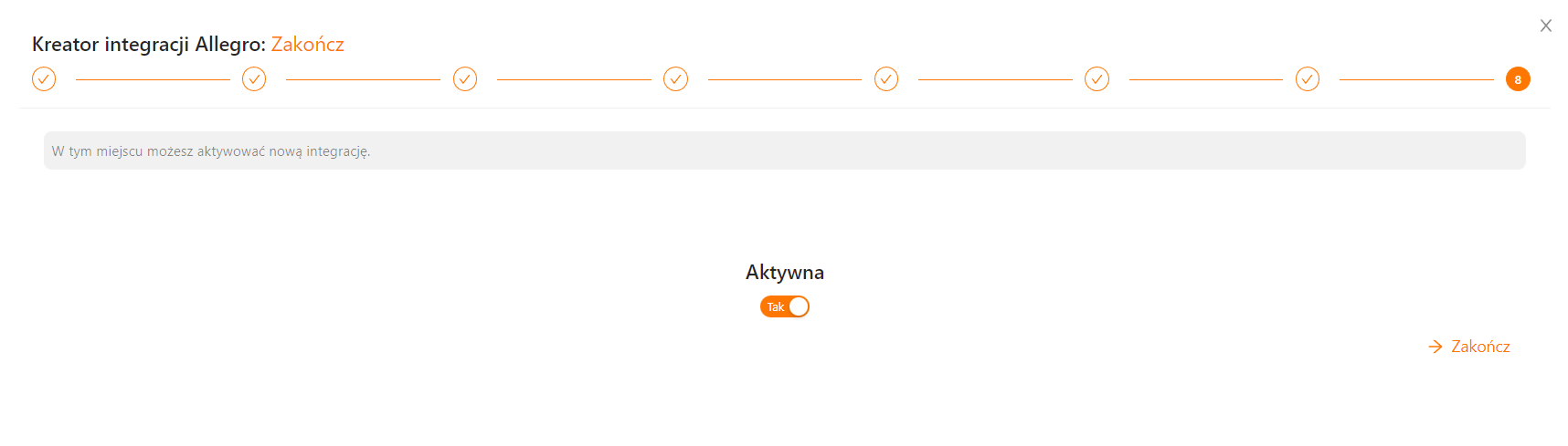 Kroki od 3-8 mogą być uzupełnione w każdej chwili w edytorze integracji już po jej utworzeniu