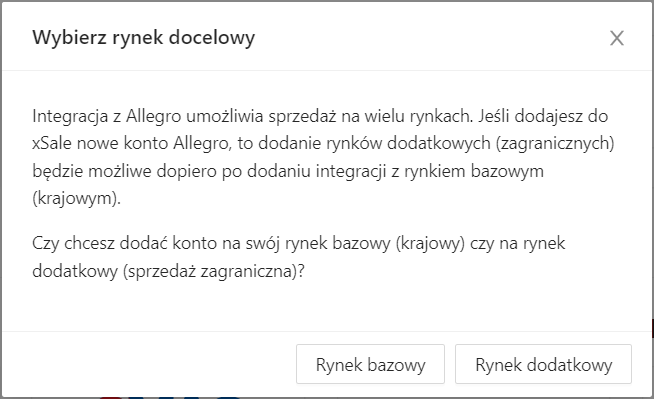 W tej instrukcji pokażemy jak dodać „Rynek bazowy” – Allegro PL. Dopiero po poprawnym dodaniu Allegro.PL będzie możliwe dodanie „Rynku dodatkowego„.