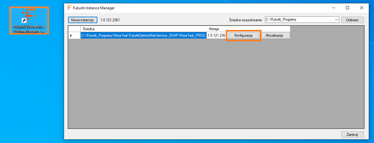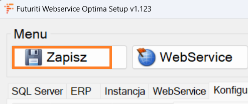Rozpocznij proces konfiguracji od uruchomienia Futuriti Webservice. Następnie należy przejść do konfiguracji.