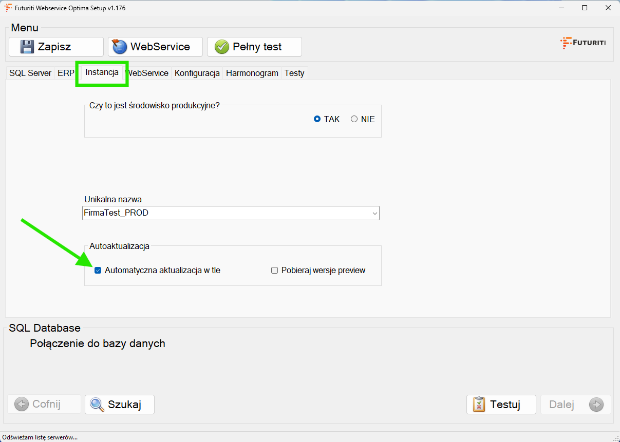 Jeżeli chcesz zaktualizować WebService oraz włączyć automatyczną aktualizację, wykonaj wszystkie poniższe kroki.