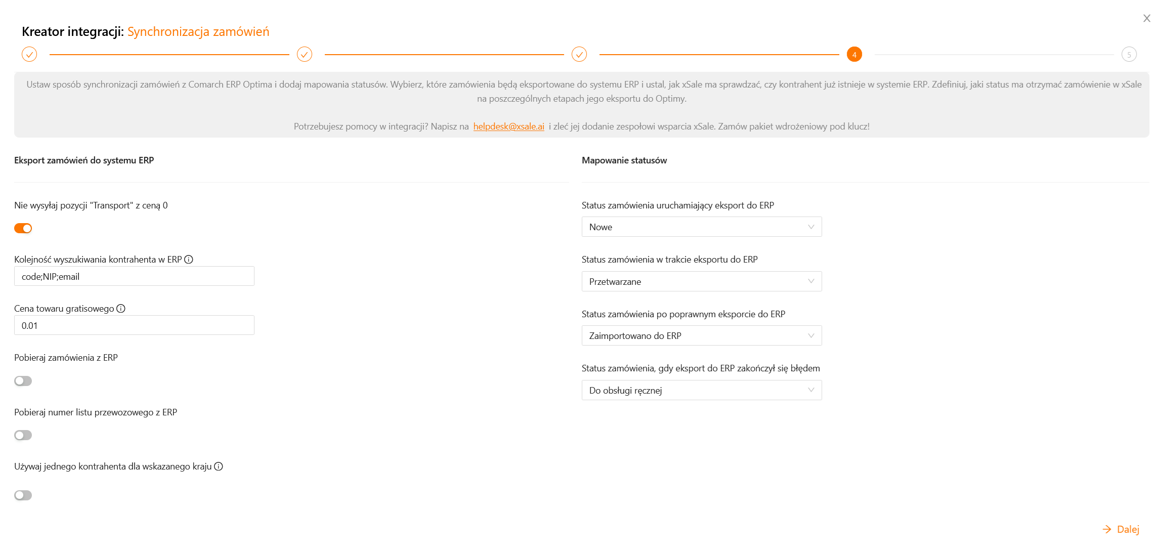 Po wybraniu integracji z Comarch ERP Optima, system przeniesie Cię do konfiguratora.