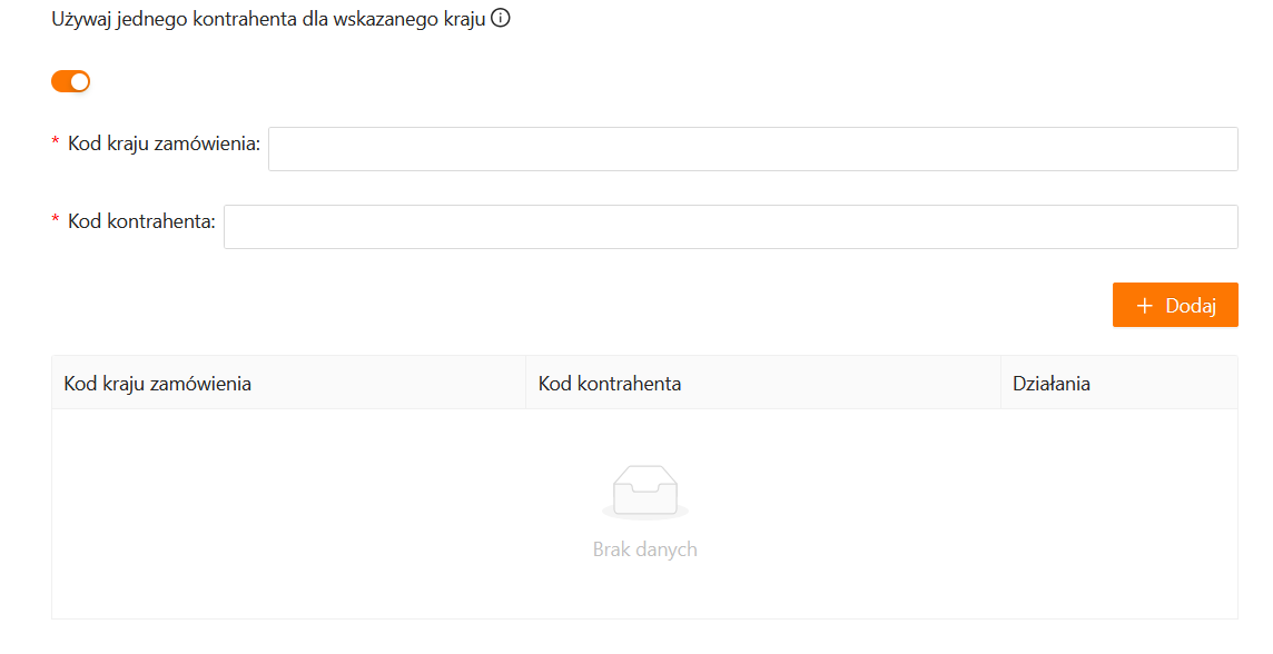 Możesz tak skonfigurować integrację, aby xSale używał jednego kontrahenta w Comarch ERP Optima dla wszystkich zamówień ze wskazanego kraju. Po aktywowaniu ustawienia i przypisaniu kontrahentów do wybranego kraju zamówienia integracja będzie używała wskazanych kontrahentów z systemu ERP (nie będą tworzeni nowi kontrahenci).