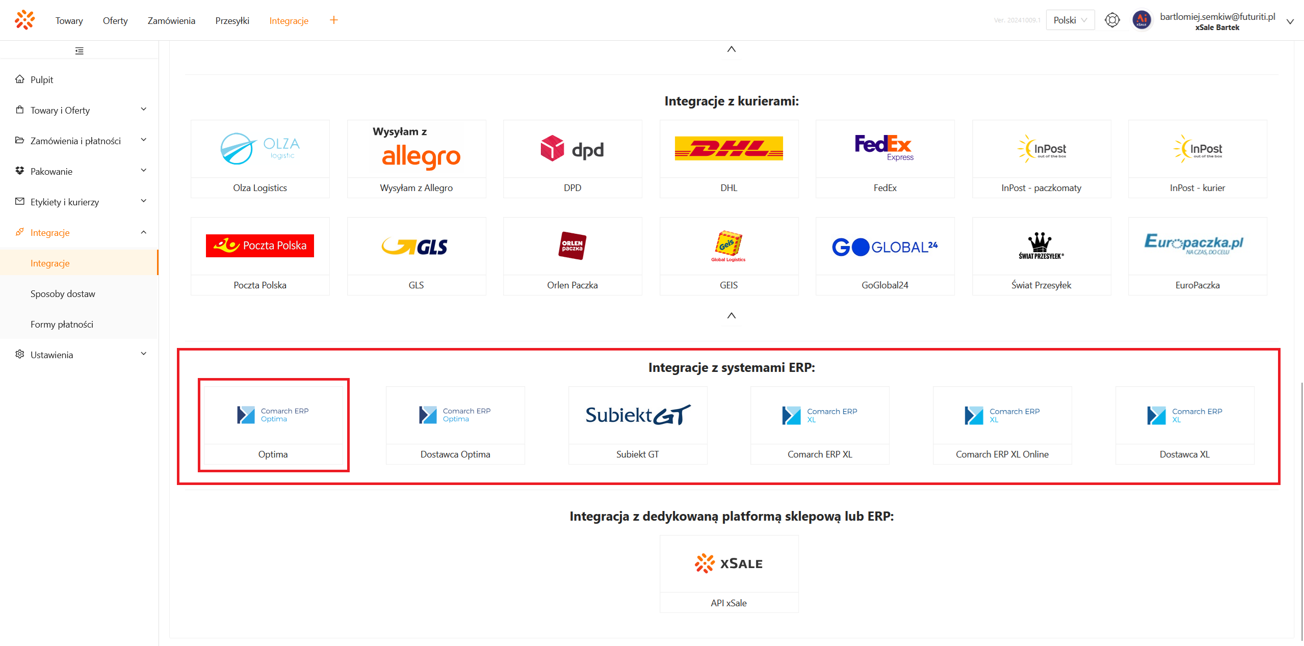 xSale oferuje możliwość integracji z systemem Comarch ERP Optima, co pozwala na automatyzację i synchronizację danych między tymi dwoma rozwiązaniami. Dzięki tej integracji użytkownicy mogą sprawnie zarządzać zamówieniami, produktami, stanami magazynowymi oraz dokumentami handlowymi, eliminując potrzebę ręcznego wprowadzania danych i minimalizując ryzyko błędów. W tym wpisie przedstawimy krok po kroku, jak skonfigurować integrację xSale z Comarch ERP Optima. Opisane zostaną wszystkie wymagane kroki, w tym sposób dodania integracji, ustawienia połączenia oraz konfiguracja kluczowych elementów, aby systemy mogły działać płynnie i efektywnie razem.