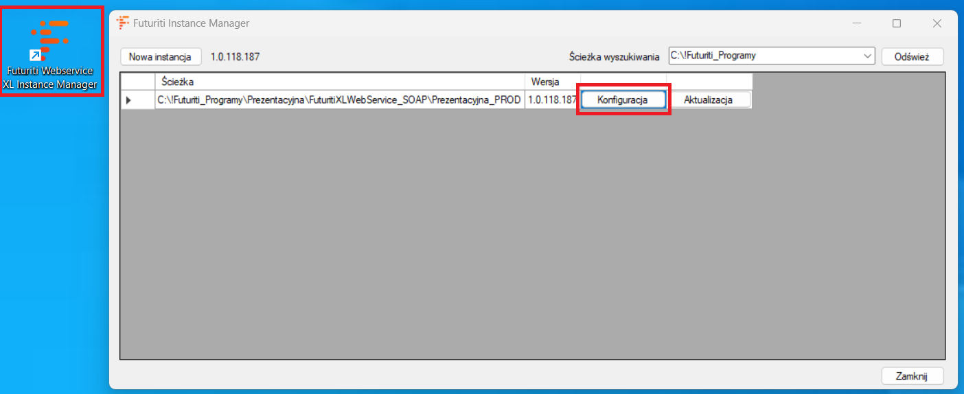 1. Rozpocznij proces konfiguracji od uruchomienia Futuriti Webservice XL. Następnie należy przejść do konfiguracji.