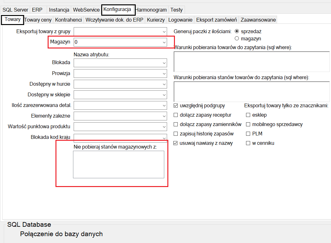 Jest też opcja ustawienia konfiguracji aby stan był pobierany z kilku magazynów.