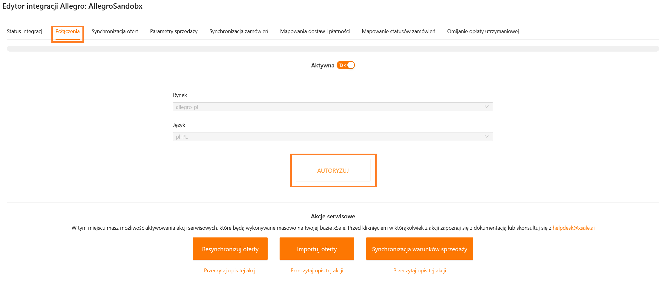 Przejdź do zakładki Połączenia i wybieramy Autoryzuj. Zaloguj się ponowie do Allegro (pamiętaj, żeby zalogować się na właściwe konto!).