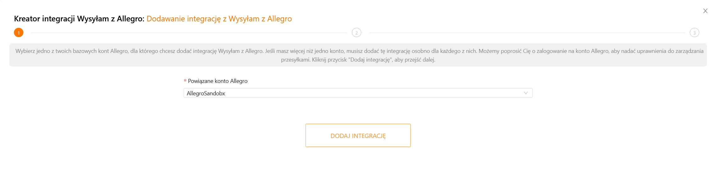 - Integracja Wysyłam z Allegro jest powiązana z konkretnym kontem Allegro. Jeśli posiadasz więcej niż jedno konto, dodaj integrację osobno dla każdego z nich.