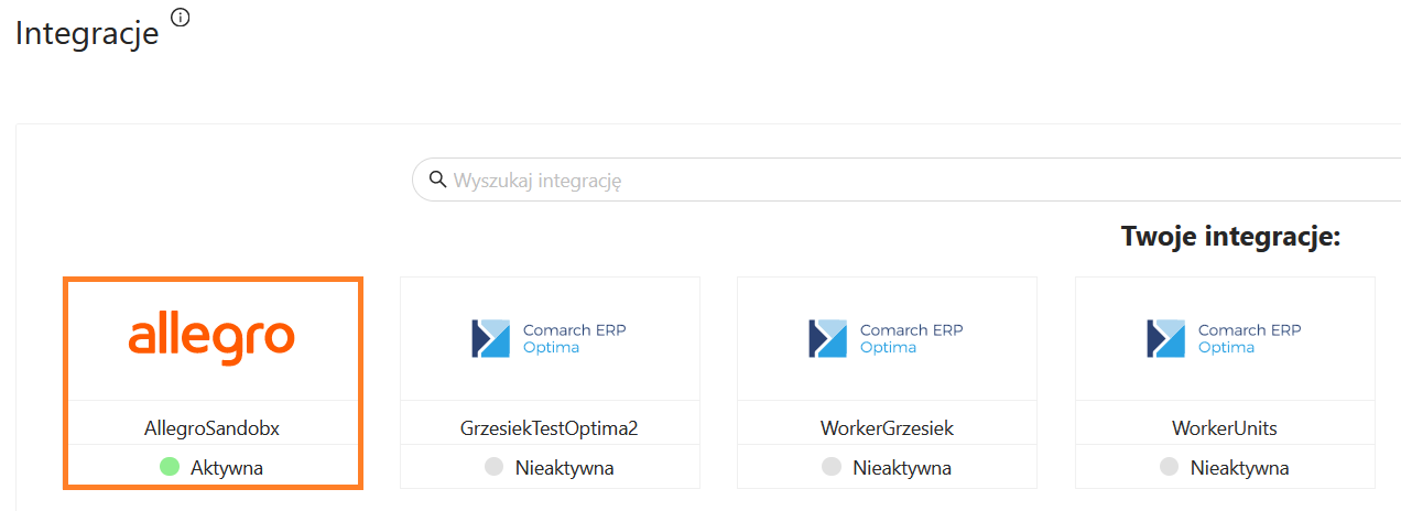 Wybierz konto Allegro, dla którego chcesz dodać integrację: