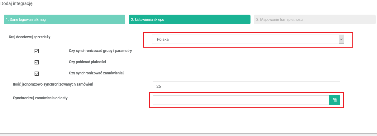 • Ustawiamy datę od kiedy synchronizować zamówienia