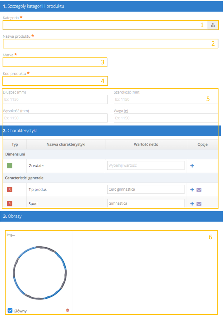 | Opis i nazwa oferty w poszczególnych językach | Nazwa | 2 | 1. Szczegóły kategorii i produktu | Nazwa produktu | 2 | |