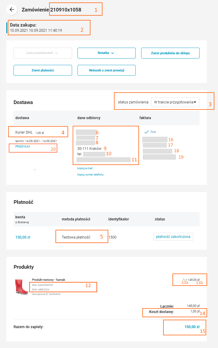 | Edycja zamówienia > Formularz adresu > Kupujący | 22 | Sprzedaż na ERLI.pl -> Zamówienia -> Lista zamówień -> Szczegóły – > Dostawa -> Dane odbiorcy | 11 | |||