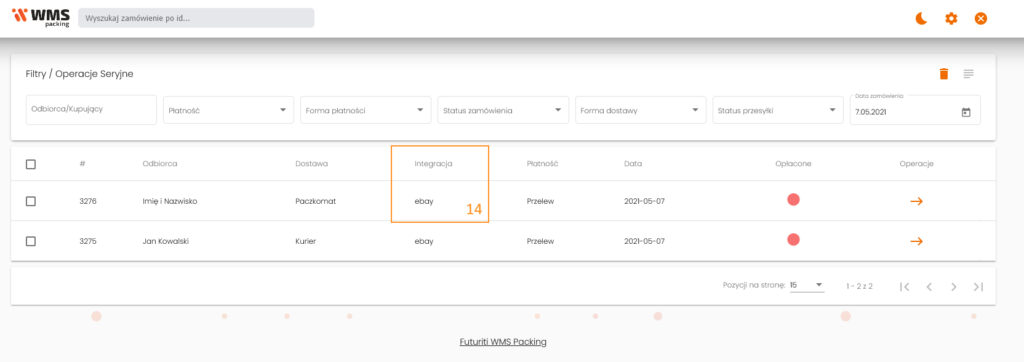 | Edycja zamówienia > Lista płatności | Płatność | 13 | Lista zamówień > Operacje > Stwórz przesyłkę | Status płatności | 6 |