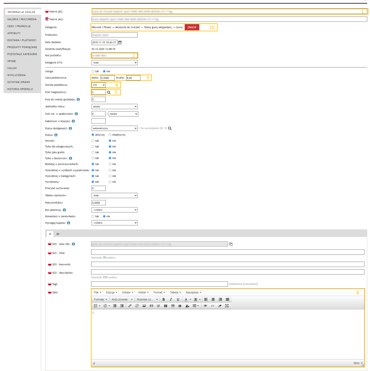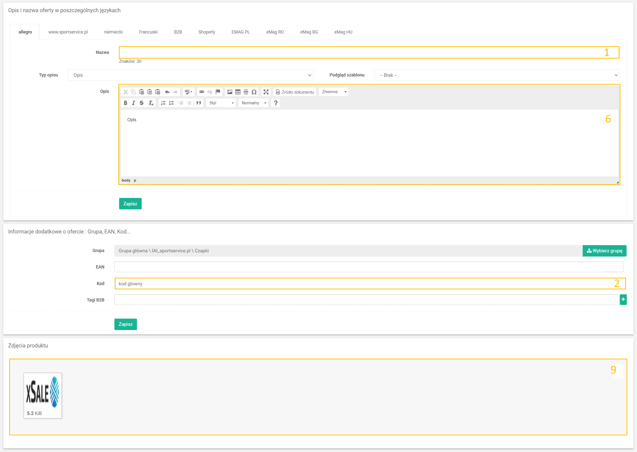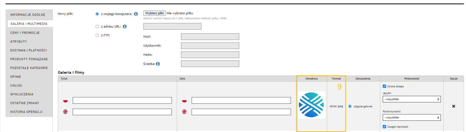 - Zdjęcia produktów (w zakresie dodawania zdjęć)