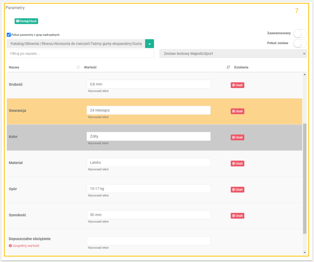 | Parametry | Parametry | 7 | Atrybuty | Cechy produktu | 7 | Parametr znajduje się w Grupa główna\AtomStore_nazwastrony\Parametry |