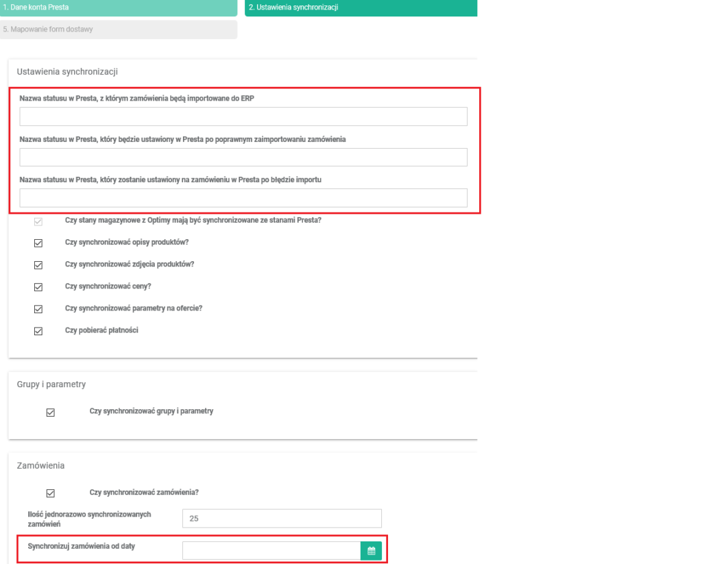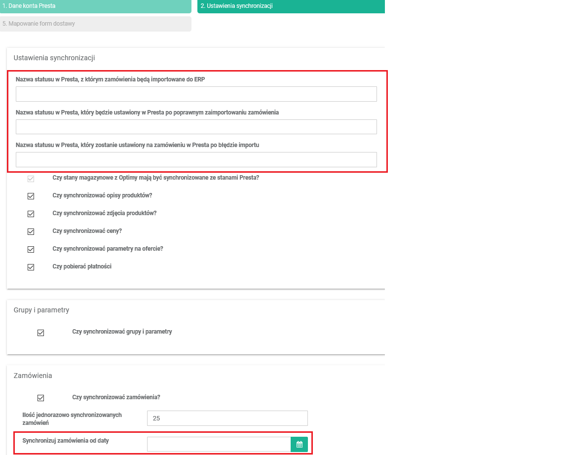 W polu Synchronizuj zamówienia od daty podaj datę, od kiedy chcesz synchronizować zamówienia.