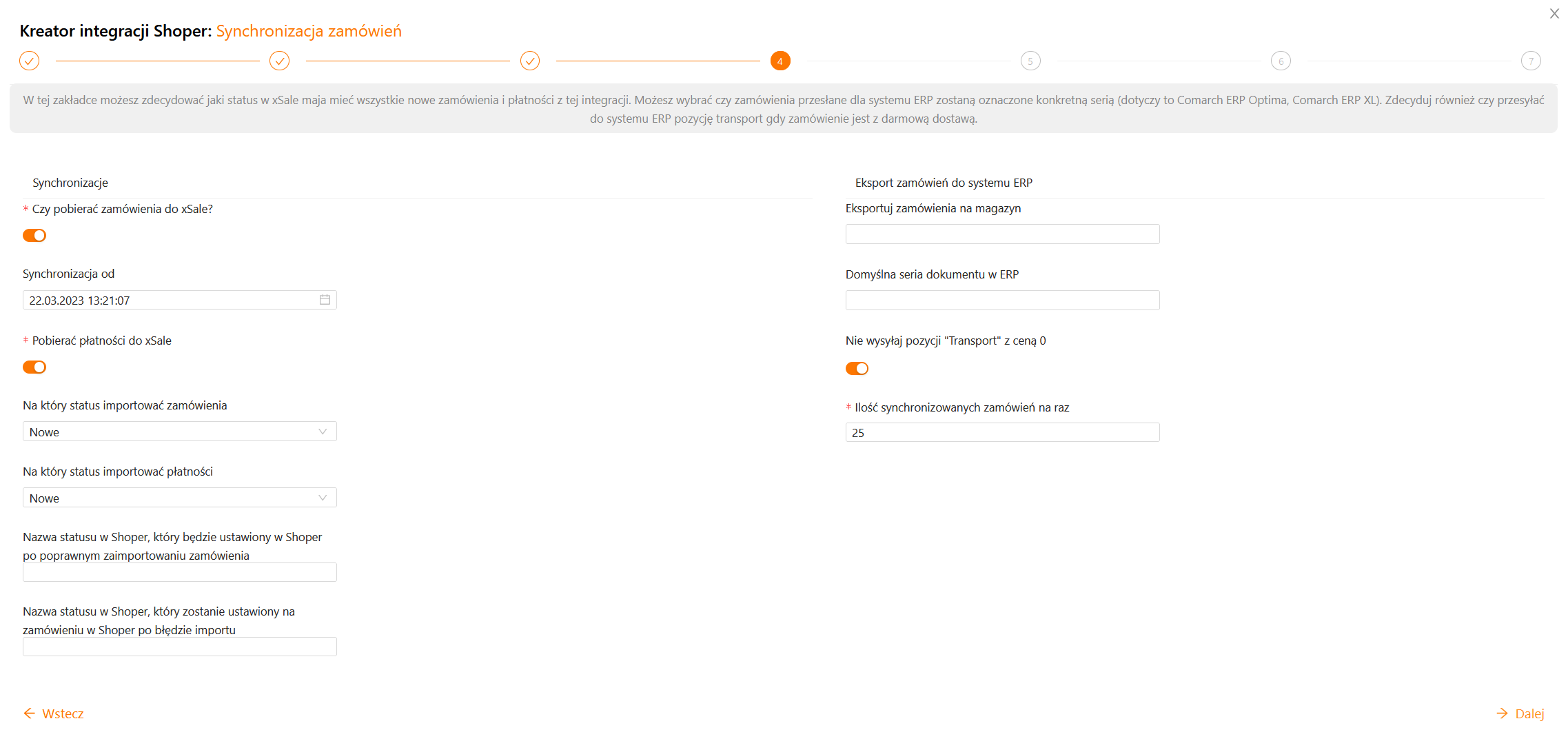 • Pole Synchronizacja od określa od kiedy xSale ma pobierać zamówienia z panelu Shoper.
