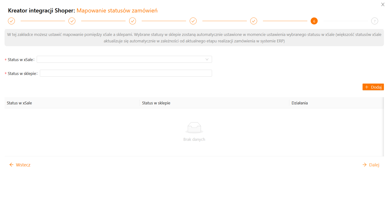 Przypisujemy status zamówienia z xSale do statusu w Shoper. Według dodanego mapowania xSale będzie automatycznie ustawiał status na zamówieniu w Shoper. Więcej o mapowaniach statusów można znaleźć w osobny artykule: Mapowanie statusów.