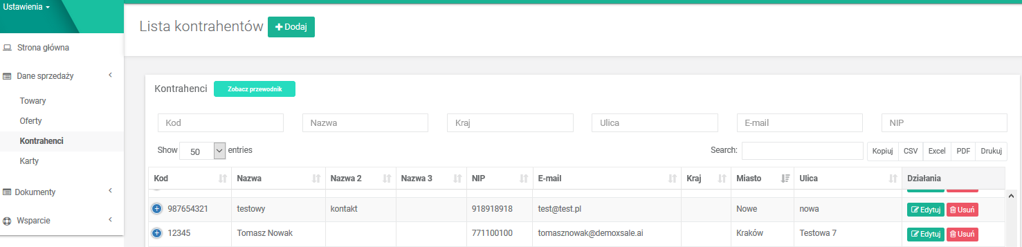 Za pomocą przycisku +Dodaj można dodać kontrahenta do xSale.