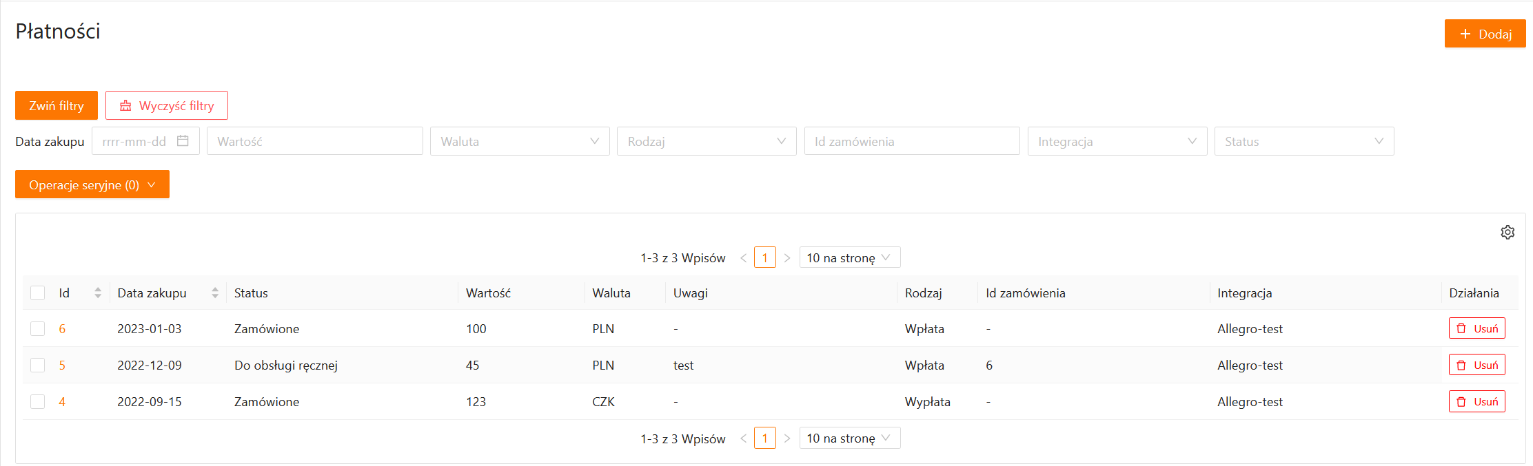 - Integracja – nazwa integracji, z której pochodzi płatność