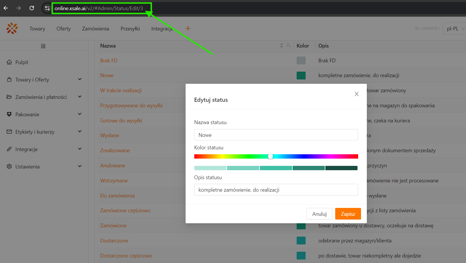 ID statusu sprawdzisz, przechodząc do jego edycji. W tym celu wejdź na listę statusów i kliknij w nazwę wybranego statusu. Formularz edycji umożliwia zmianę wszystkich danych, natomiast unikalne ID statusu możesz odczytać z paska adresu w przeglądarce internetowej (cyfra bądź liczba na końcu adresu).