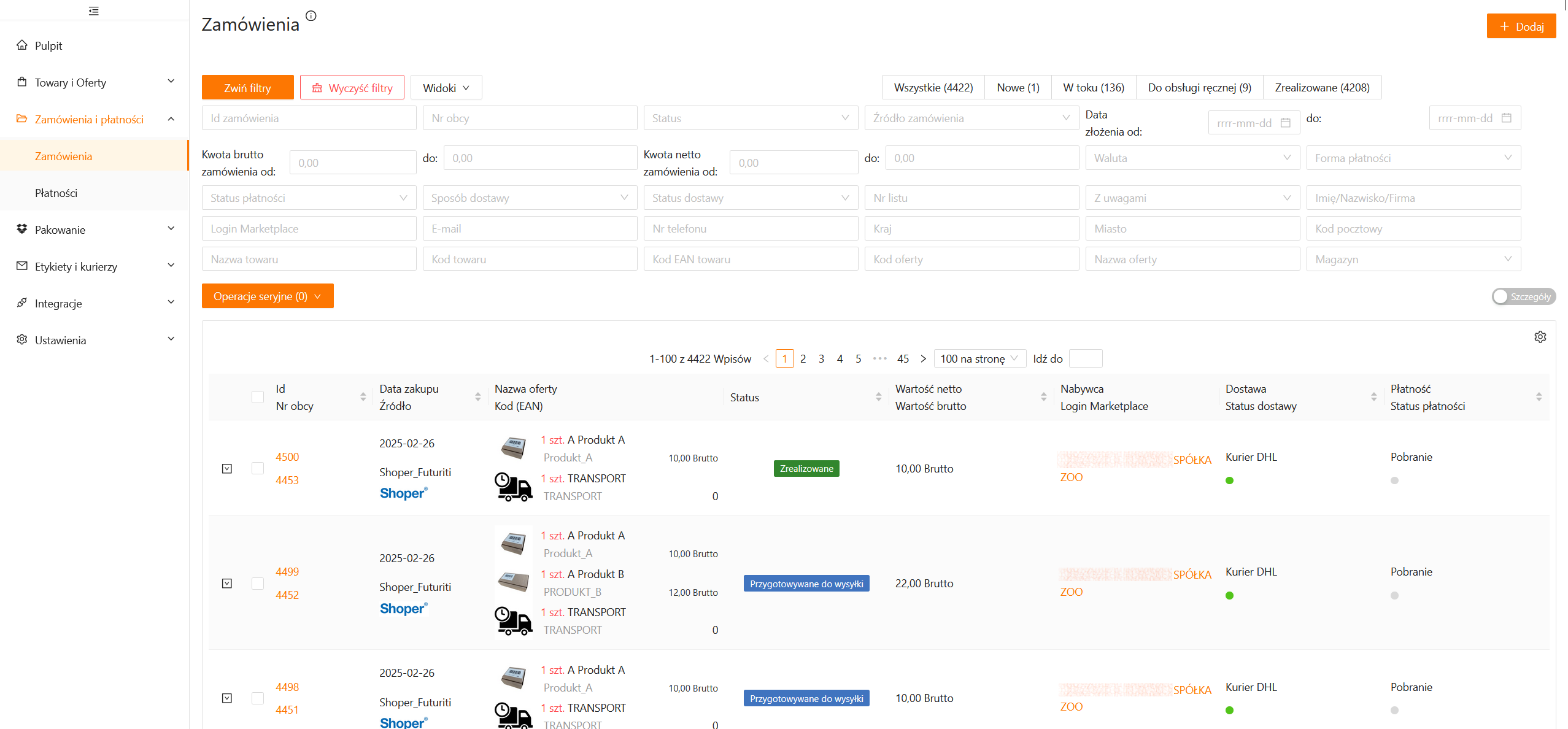 Widok listy zamówień dostępny jest w zakładce Zamówienia i płatności – Zamówienia.
