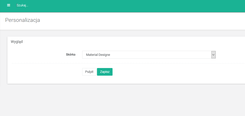 Aby zmienić skórkę należy kliknąć Ustawienia w lewym górnym rogu strony a następnie wybrać Personalizacja.