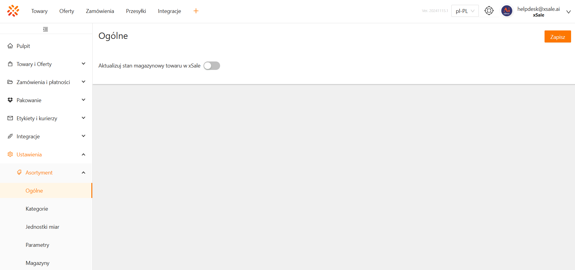 Jeśli chcesz zmienić ustawienia, kliknij checkbox przy polu Aktualizuj stan magazynowy towaru w xSale. Następnie kliknij przycisk Zapisz znajdujący się w prawym górnym rogu okna.