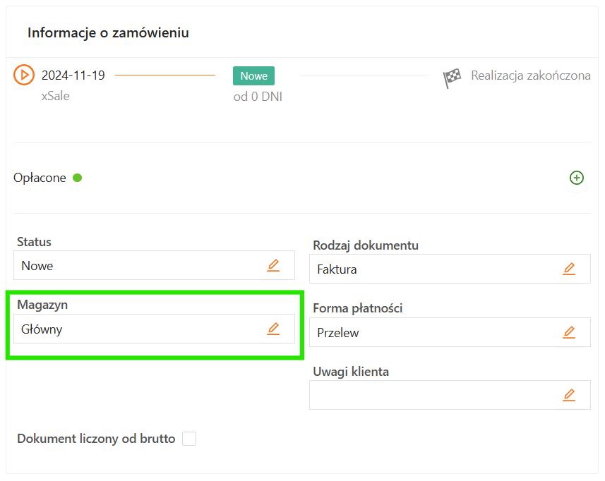 - w utworzonym zamówieniu nie został wskazany magazyn xSale