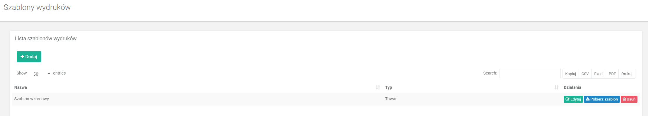 Natomiast szablon możemy dodać w menu konfiguracja->zaawansowane->szablony wydruków